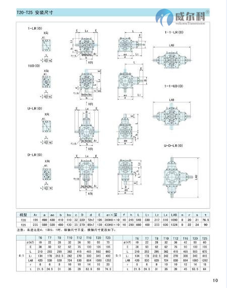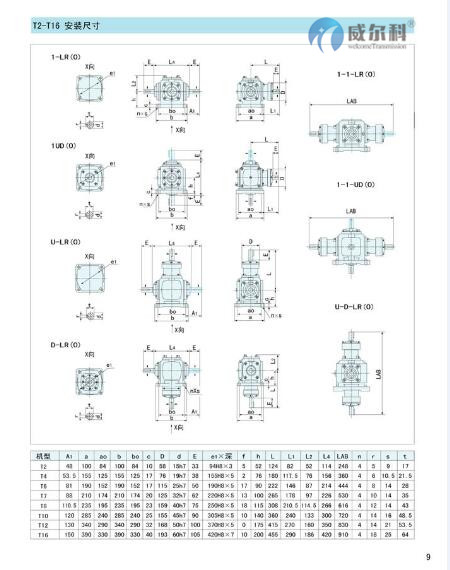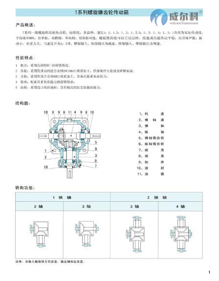1.T系列螺旋傘齒輪轉(zhuǎn)向箱,標(biāo)準(zhǔn)化,多品種, 速比全部為實(shí)際傳動(dòng)比。平均效率達(dá)98% 。